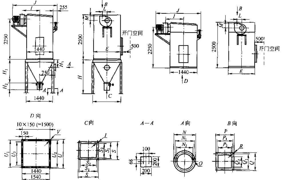 H——单机除尘器;